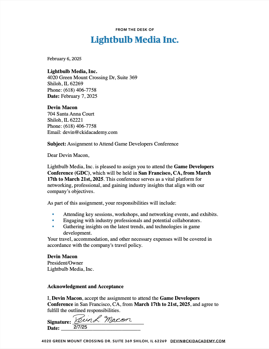 Press/Media Letter of Assignment